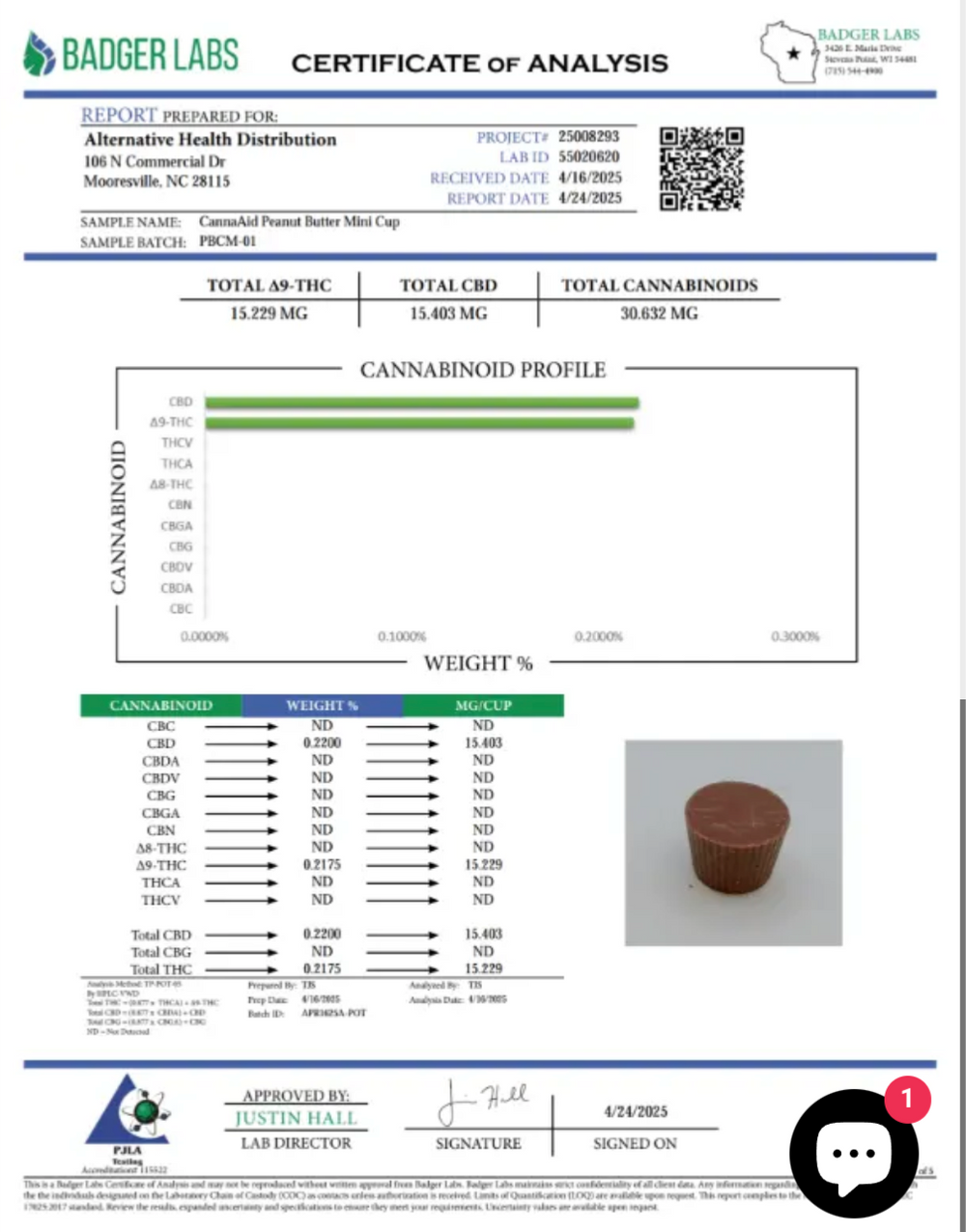 Ingredients: Sugar, Cocoa butter, whole milk powder, chocolate liquor, nonfat dry milk, peanuts, milk fat, organic & sustainably sourced palm stearin, full spectrum hemp extract, sunflower lecithin, natural vanilla extract.