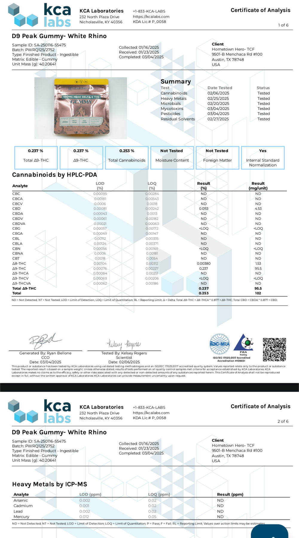 Embrace soothing Indica terpenes and the bold tang of wild cherries in our handcrafted Peak Gummy. Each piece is infused with 100mg of Delta-9 THC and 20mg of White Rhino live rosin for a serene exploration of your limits.