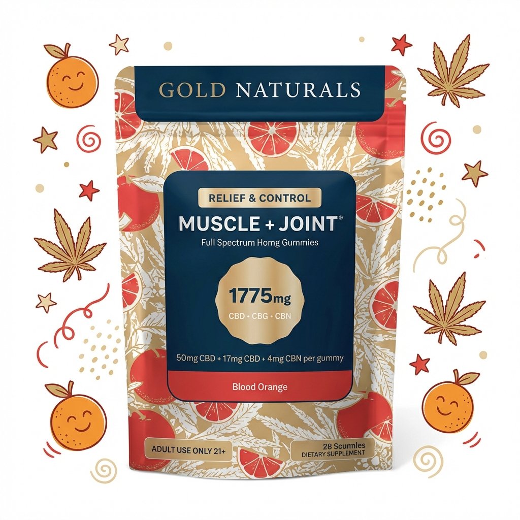 Gold Naturals Muscle+Joint Full Spectrum Hemp Extract Gummies (Blood Orange) CBD+CBG+CBN (25ct) *Utah Compliant