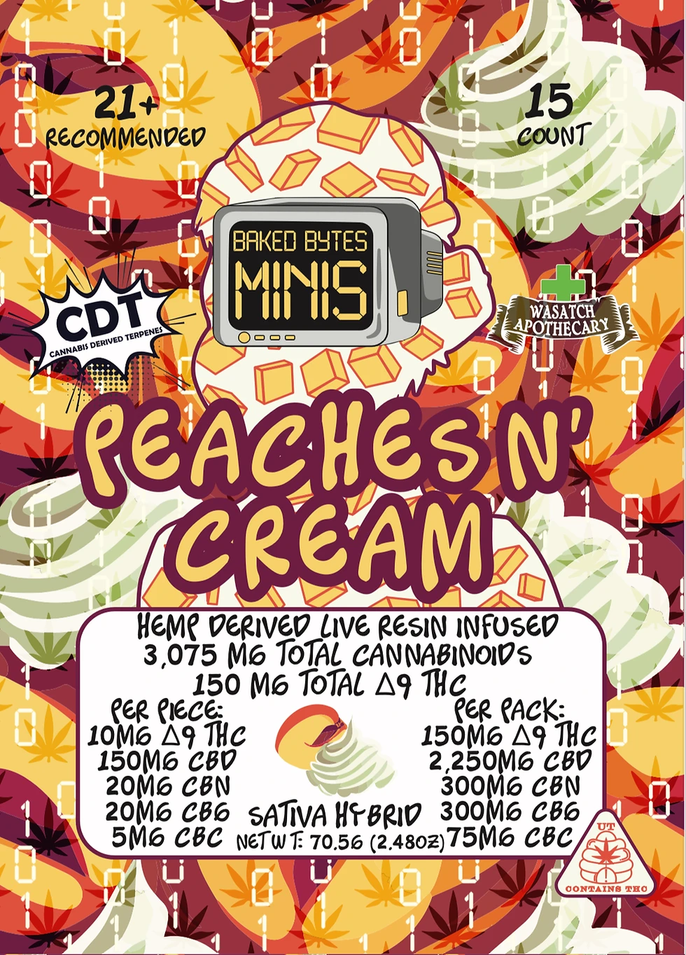 ![7c6644_52fa8e1b57554e72848491a0fc6960f2-mv2.webp Wasatch Apothecary Baked Bytes Peaches N' Cream (Sativa/Hybrid) Full Spectrum D9 THC Gummies [10mg/1ct] - Image 1](https://wildcannabis.com/wp-content/uploads/2026/03/7c6644_52fa8e1b57554e72848491a0fc6960f2-mv2.webp)